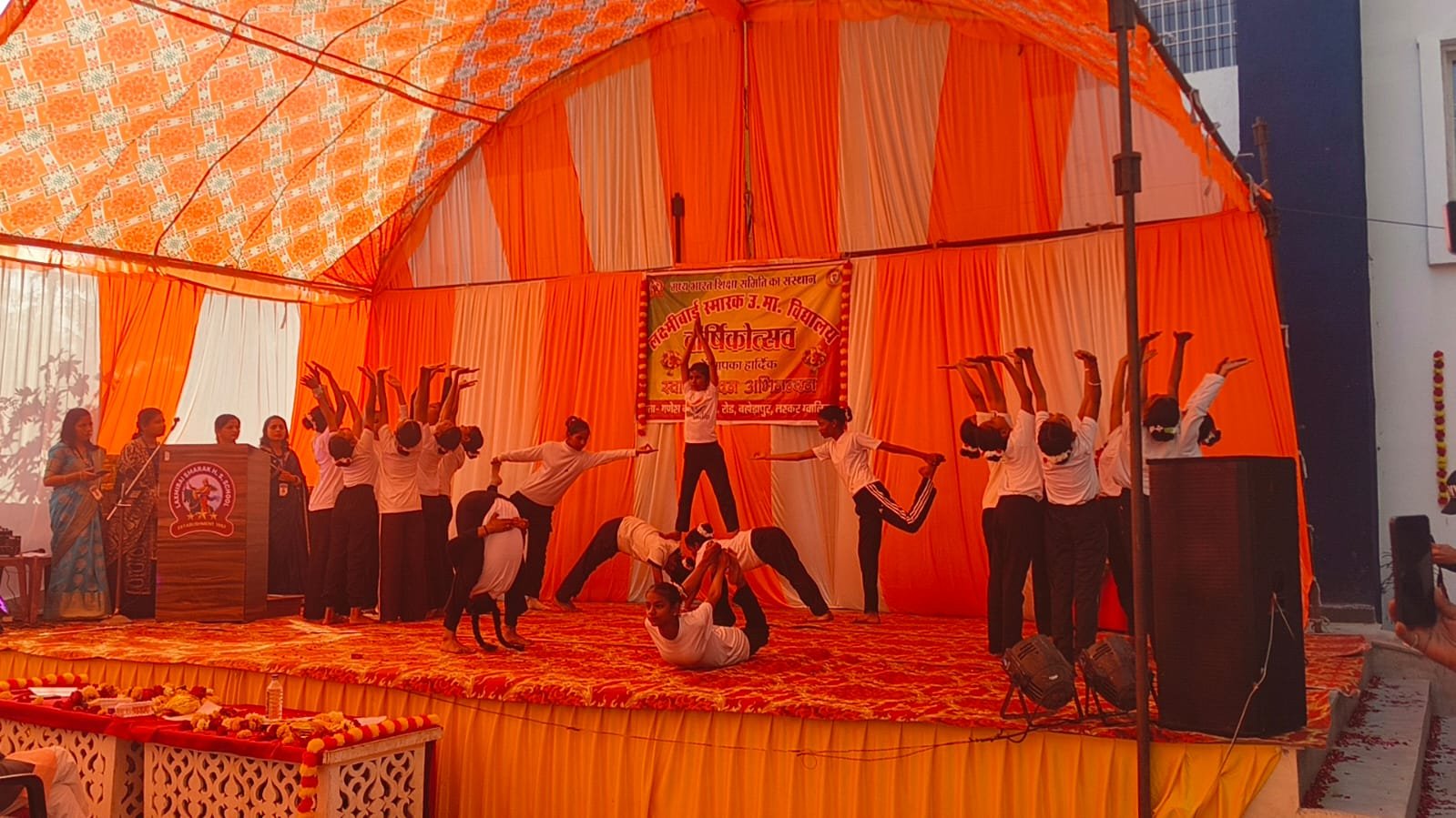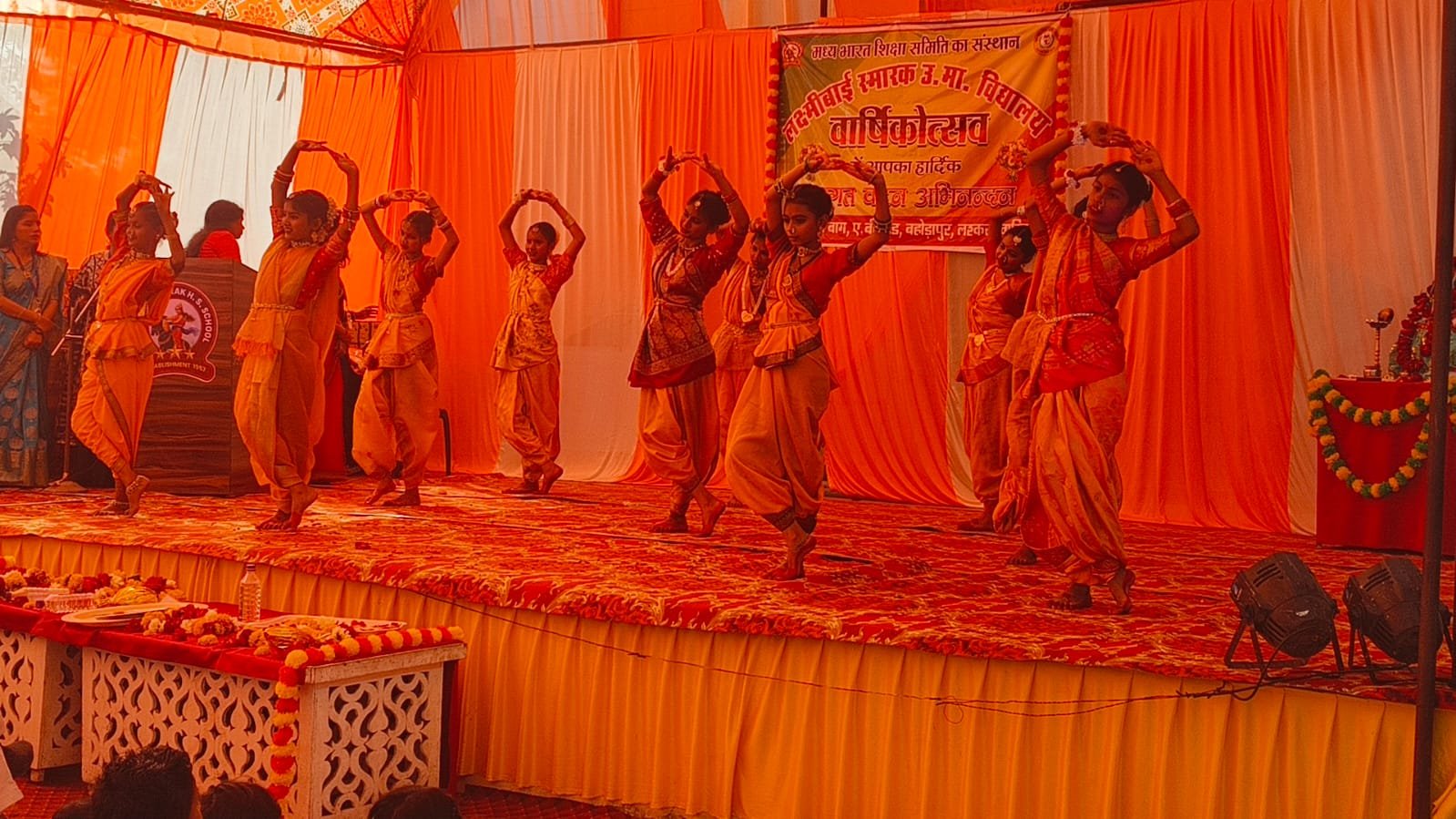 आज हमारे विद्यालय में वार्षिकोत्सव का आयोजन हुआ। जिसमें मुख्य अतिथि से रूप में माननीय ऊर्जा मंत्री श्री प्रद्युमन सिंह तोमर रहे। कार्यक्रम की अध्यक्षता जिला शिक्षा अधिकारी माननीय हरिओम चतुर्वेदी जी ने की। तथा विशेष अतिथि के रूप में माननीय जयप्रकाश राजोरिया जी रहे। साथ ही कार्यक्रम में मध्य भारत शिक्षा समिति के अध्यक्ष माननीय डाॅ. राजेन्द्र बांदिल जी उपस्थित रहे। कार्यक्रम का प्रांरभ मॉं सरस्वती पूजन के साथ हुआ। कार्यक्रम में विद्यालय की छात्र-छात्राओं ने रंगारंग प्रस्तुतियाँ दी। कार्यक्रम का समापन राष्ट्रगान के साथ किया।