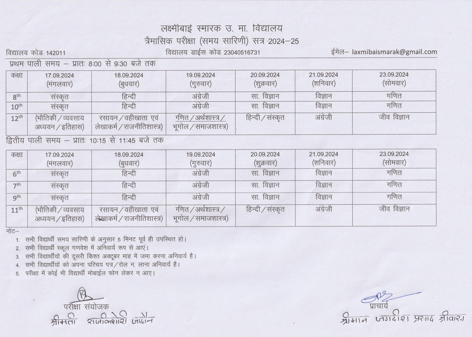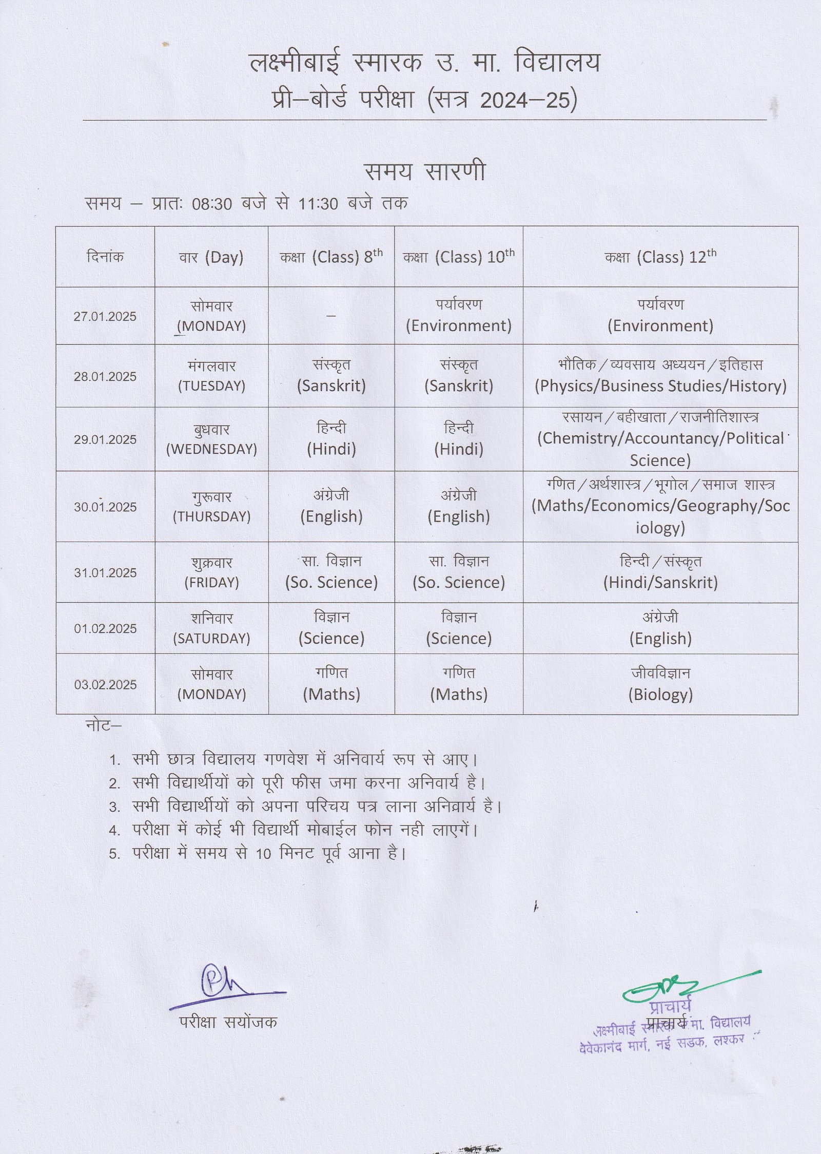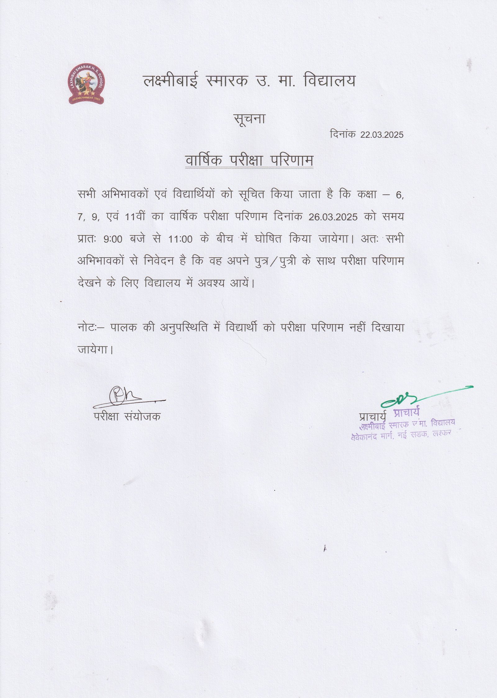 Learn More Our Courseविद्यालय एक दृष्टि में वीरांगना लक्ष्मीबाई शिक्षा समिति के पदाधिकारियों के असीम त्याग एवं परिश्रम के फलस्वरूप सन् 1957 में लक्ष्मीबाई स्मारक उ. मा. विद्यालय अपनी गरिमा एवं लोकप्रियता के कारण नगर में एक प्रतिष्ठित विद्यालय के रूप में विख्यात हुआ कालान्तर में यह विद्यालय उत्तरोत्तर प्रगति की ओर अपना कदम बढ़ा रहा है। नित नूतन नवोन्मेष की ओर अग्रसर इस संस्था की नूतन उपलब्धि यह हैं। कि काउन्टर मैग्नेट सिटी साड़ा में 5200 वर्गमीटर का वृहद शिक्षण परिसर हेतु भूमि क्रय की गई है। इस प्रकार यह संस्था शिक्षा की गुणवत्ता और प्रसार की दिशा में सतत् प्रयत्न शील है और शीघ्र ही शैक्षिक सुधारों के साथ-साथ नूतन संस्थान की आधार शिला रखेगी।