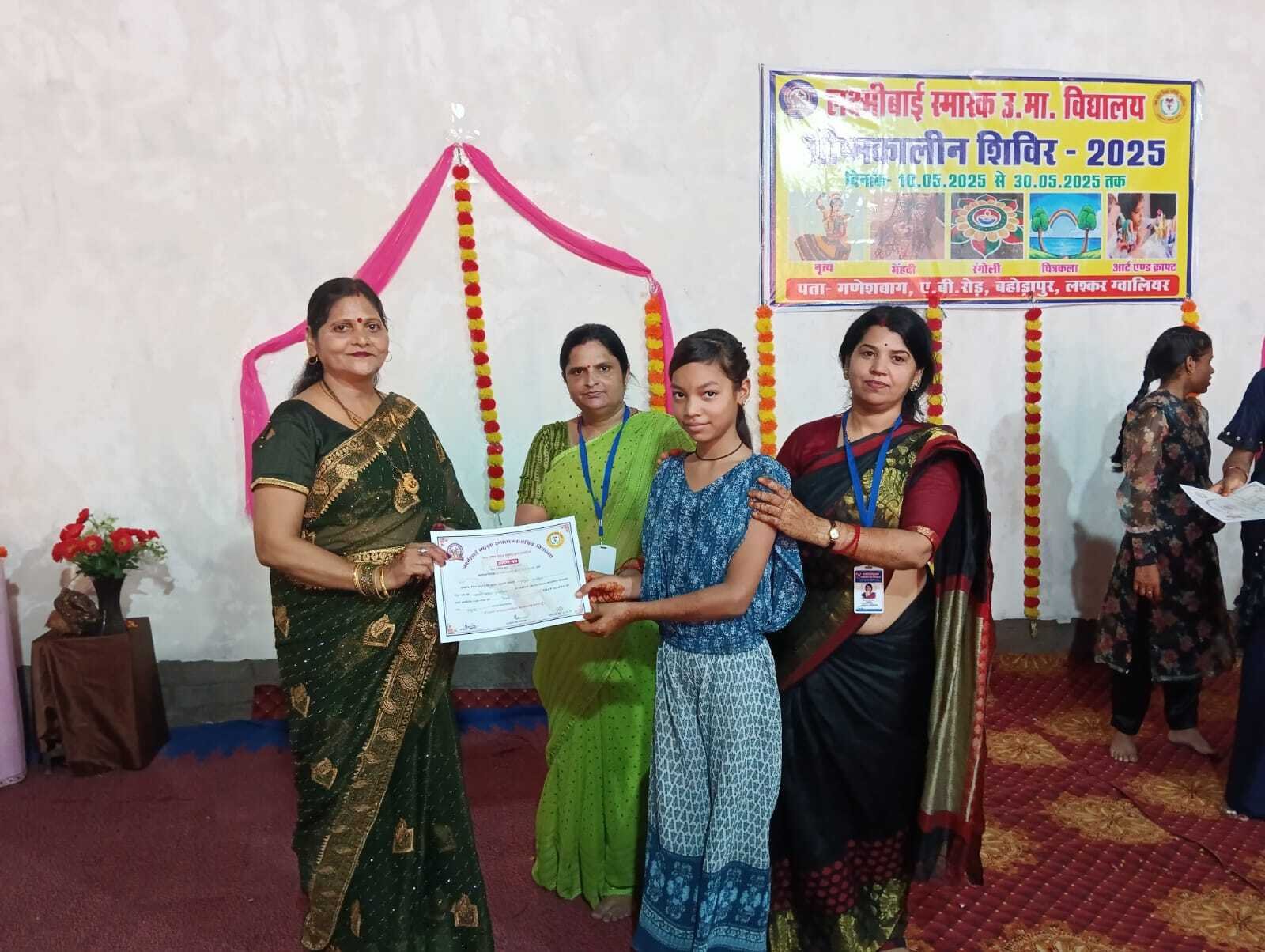 Summer camp is organised by the Laxmibai Smarak H. S. School at Ganesh Bagh, RR Tower, AB Road, Bahodapur from 10.05.2025 to 30.05.2025, and this camp is extended to 10.06.2025. Dance, Mehandi, Art & Craft, and Drawing etc. activities are learned with enjoying and enthusiastic.